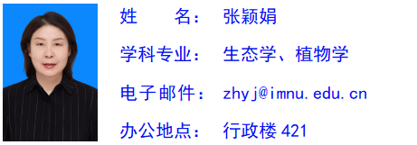 张颖娟,女,汉族,1970年生,呼和浩特人,理学博士,m88官网教授,硕士生导师。主要研究领域为植物生态学,恢复生态学,学科教学(生物)等。主持国家自然科学基金项目1项、省部级科研项目10余项。发表研究论文30余篇,出版学术著作3部。