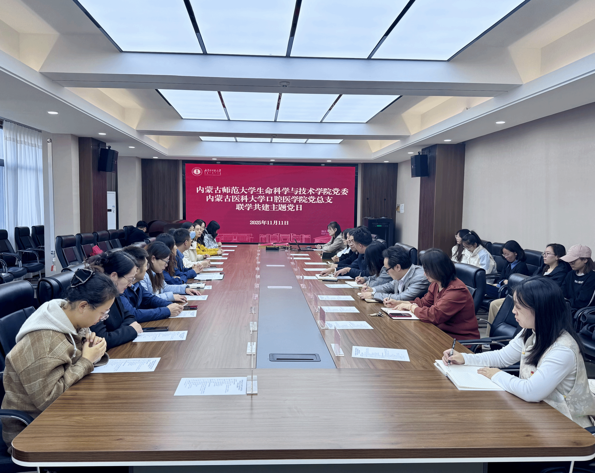 为深入学习贯彻党的二十届四中全会精神,强化基层党组织政治功能与组织功能,探索校际党建共建与学科融合新模式,11月11日下午,m88官网与内蒙古医科大学口腔医公司开展联学共建主题党日活动。两院领导班子、党支部书记、科室负责人和部分党员师生代表参加活动。主题党日活动由苏小波主持。
