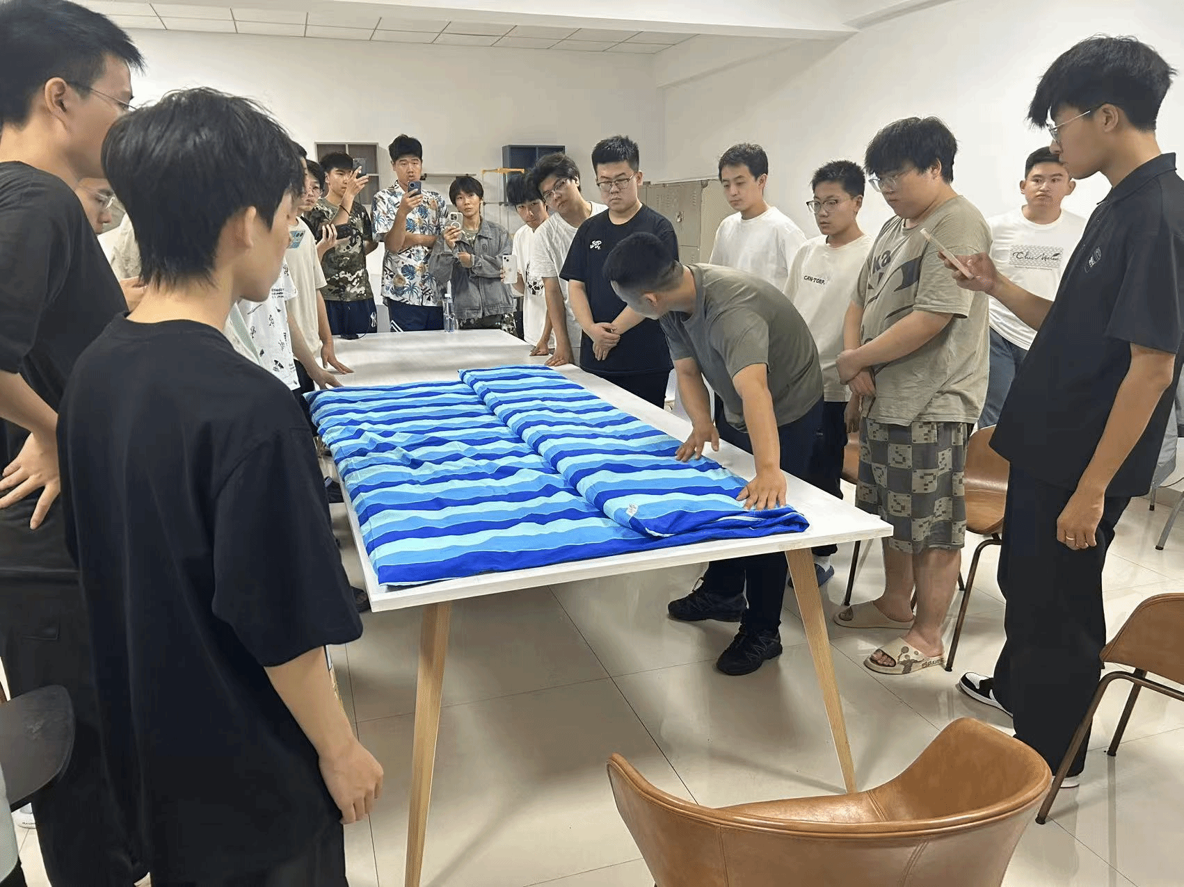 新生们认真观摩、积极实践,经过反复尝试,逐渐掌握了要领。整齐划一的床铺和方方正正的军被,成为训练场外一道亮丽的风景线。许多同学表示,叠军被不仅是一种技能,更让他们体会到严谨、规范、坚持的可贵精神。